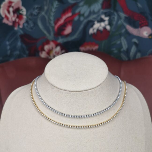 Collana tennis in acciaio inossidabile galvanizzatoPuoi regolare la lunghezza della collana tramite il cursore,