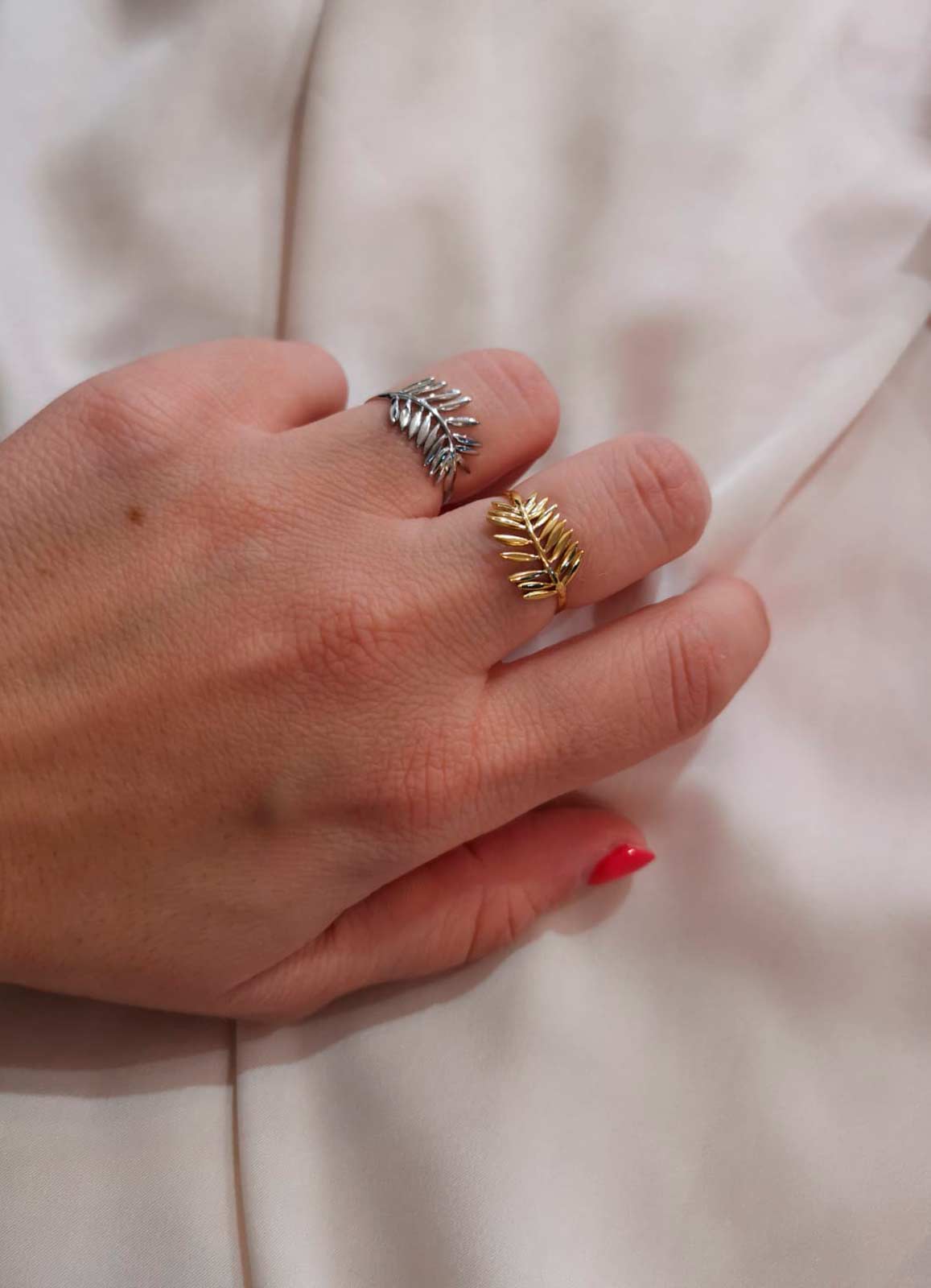 Anello in acciaio chirurgico inossidabile e anallergico a forma foglia