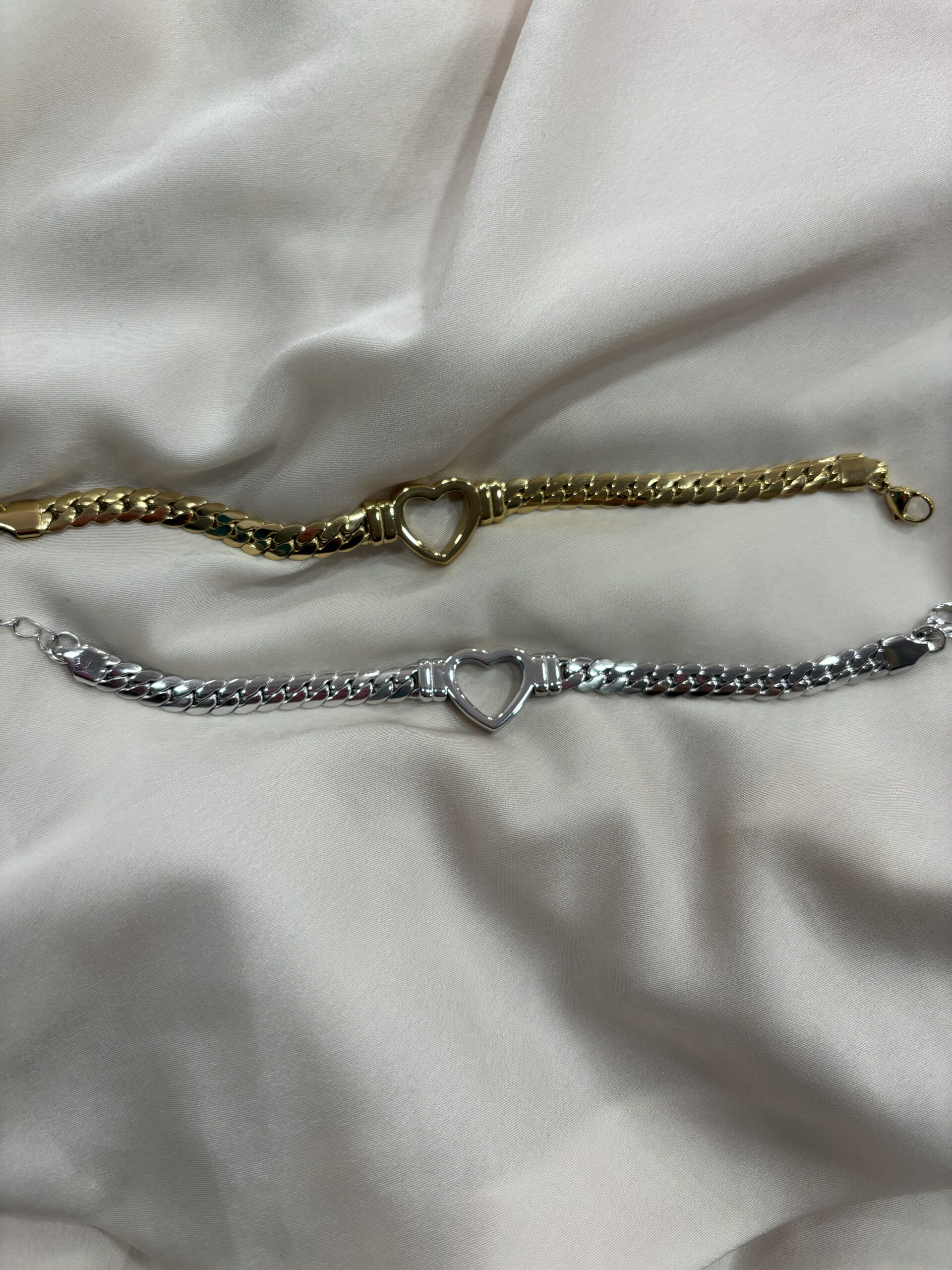 Bracciale catena con cuore , in acciaio chirurgico anallergico