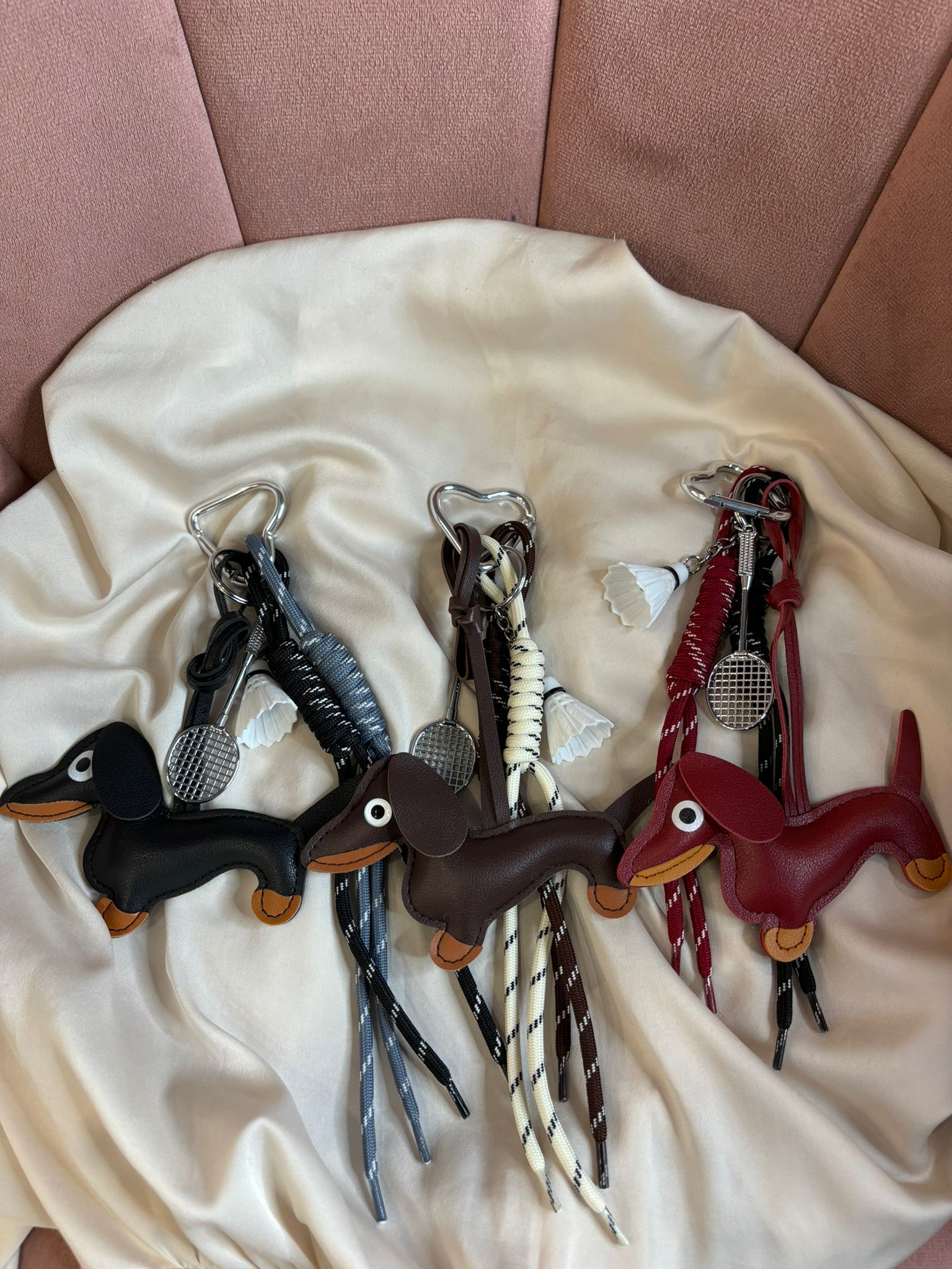 MATERIALE Charm borda bassotto variante racchetta, nelle varianti colore marrone, nero e bordeaux