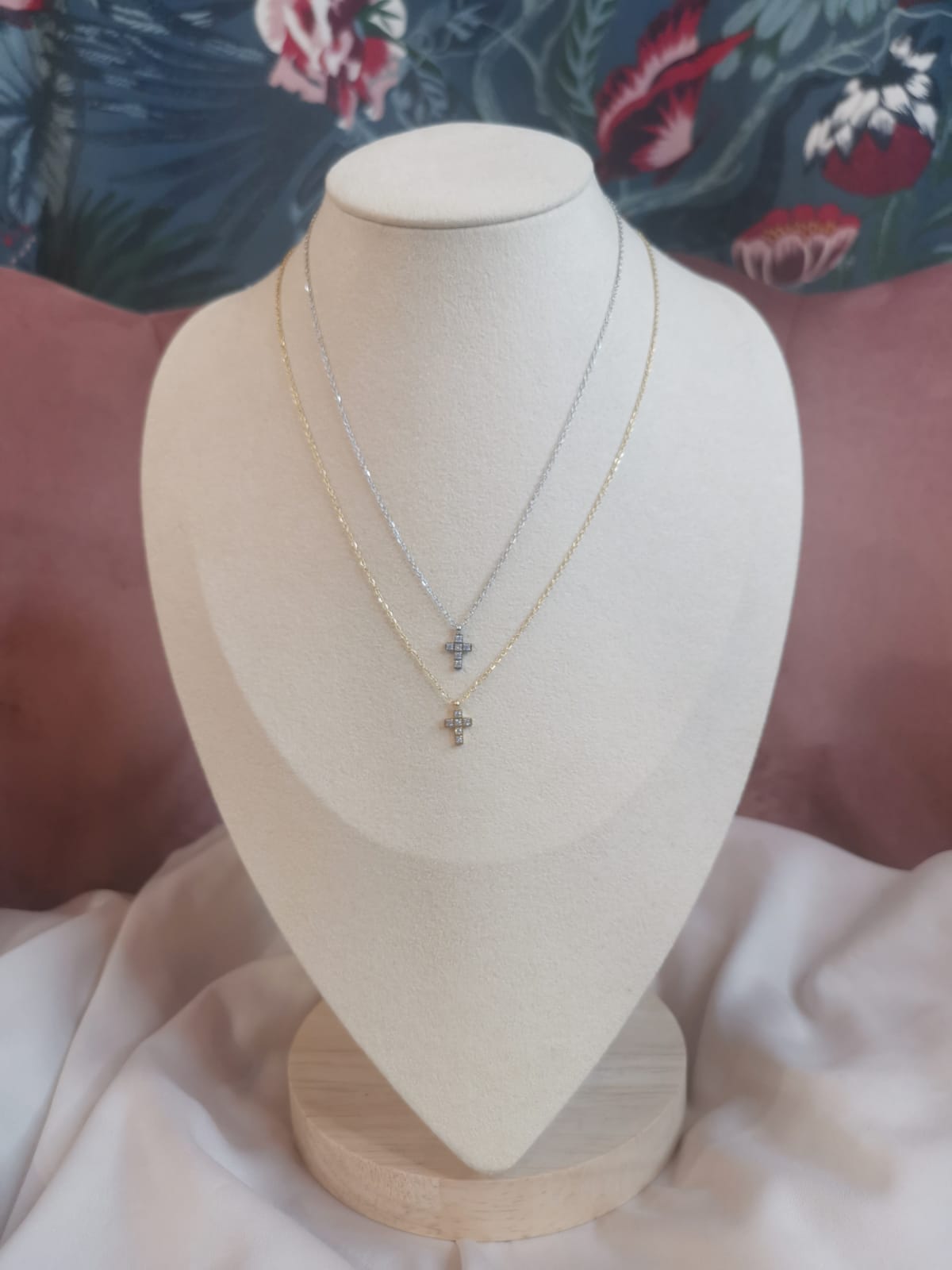 Collana con croce strass extra small, in acciaio inossidabile anallergico
