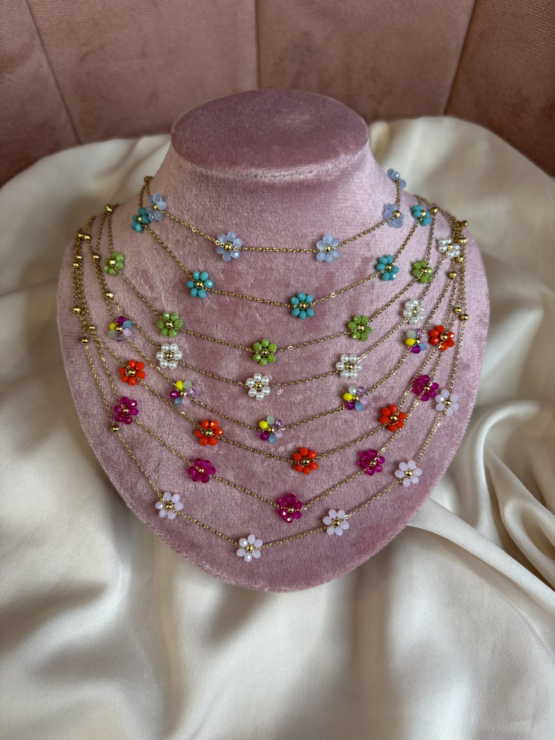 Collana margherite con cristallini, in acciaio inossidabile anallergico