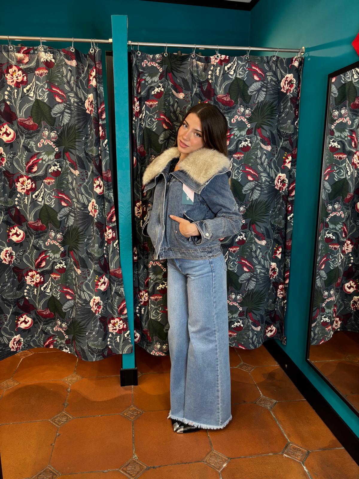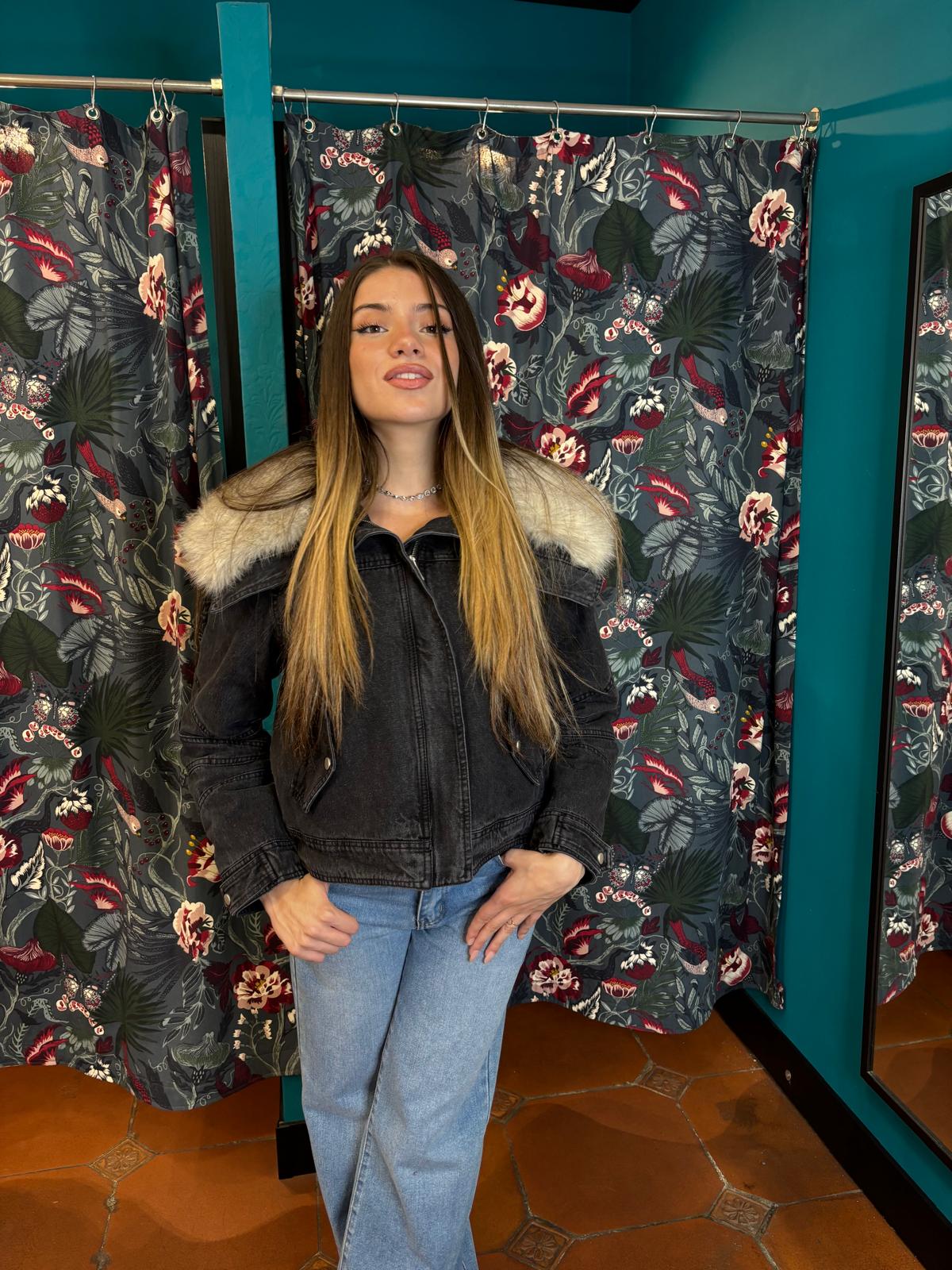 Giubbotto di jeans imbottito internamente con il piumino con eco pelliccia rimovibile!