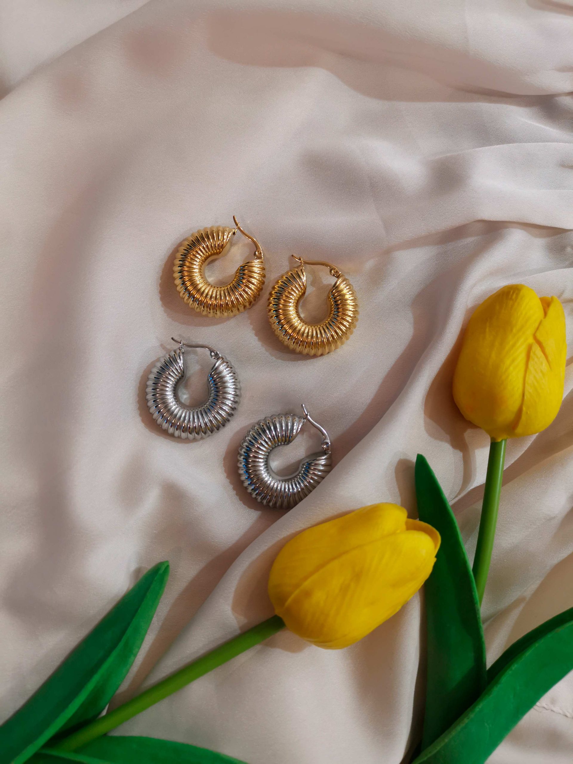 Orecchini in acciaio inossidabile anallergico tondi bombati zigrinati