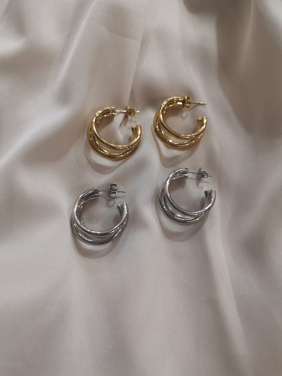 Orecchini in acciaio inossidabile anallergico con tre cerchi